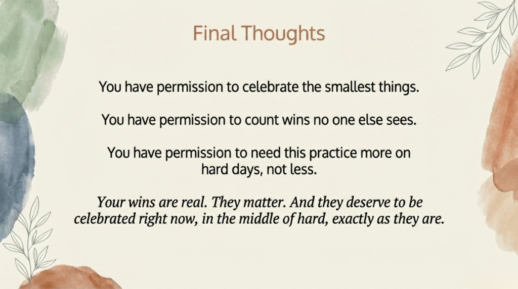 Your wins are real. They matter. And they deserve to be celebrated—not someday when things are easier, but right now, in the middle of hard, exactly as they are.